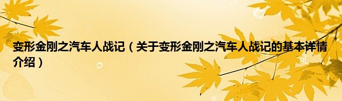 本文关于变形金刚之汽车人战记的基本详情介绍就讲解完毕,希望对大家有所帮助。