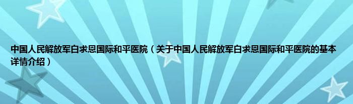 本文关于中国人民解放军白求恩国际和平医院的基本详情介绍就讲解完毕,希望对大家有所帮助。