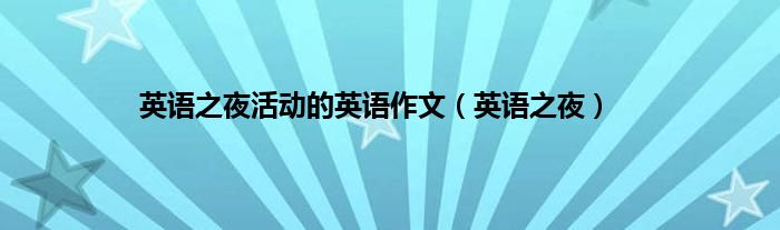 大家好,小问来为大家解答以上问题。英语之夜活动的英语作文,英语之夜这个很多人还不知道,现在让我们一起来看看吧!