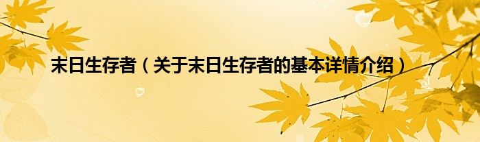 本文关于末日生存者的基本详情介绍就讲解完毕,希望对大家有所帮助。