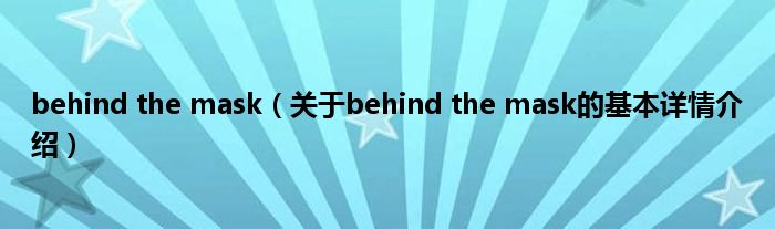 本文关于behind the mask的基本详情介绍就讲解完毕,希望对大家有所帮助。