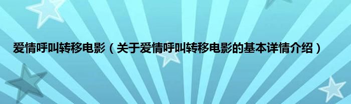 本文关于爱情呼叫转移电影的基本详情介绍就讲解完毕,希望对大家有所帮助。