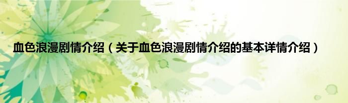 本文关于血色浪漫剧情介绍的基本详情介绍就讲解完毕,希望对大家有所帮助。
