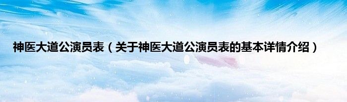 本文关于神医大道公演员表的基本详情介绍就讲解完毕,希望对大家有所帮助。