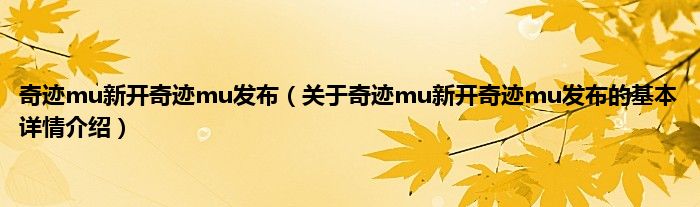 本文关于奇迹mu新开奇迹mu发布的基本详情介绍就讲解完毕,希望对大家有所帮助。