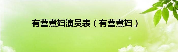 大家好,小问来为大家解答以上问题。有营煮妇演员表,有营煮妇这个很多人还不知道,现在让我们一起来看看吧!