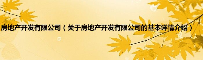 本文关于房地产开发有限公司的基本详情介绍就讲解完毕,希望对大家有所帮助。