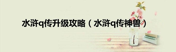以上就是【水浒q传升级攻略,水浒q传神兽】相关内容。