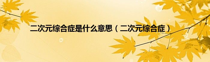 以上就是【二次元综合症是什么意思,二次元综合症】相关内容。