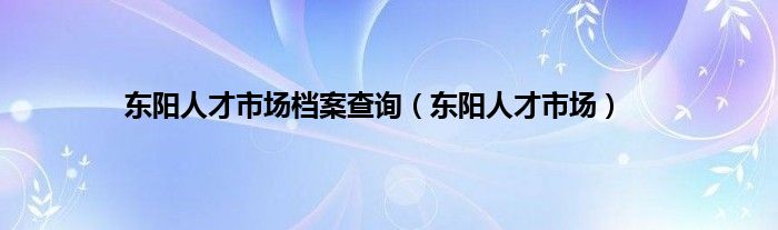 东阳人才市场档案查询(东阳人才市场)