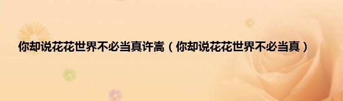 13、你却说 花花世界 不必当真