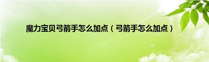 以上就是【魔力宝贝弓箭手怎么加点,弓箭手怎么加点】相关内容。