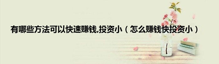 大家好,小问来为大家解答以上问题。有哪些方法可以快速赚钱,投资小,怎么赚钱快投资小这个很多人还不知道,现在让我们一起来看看吧!