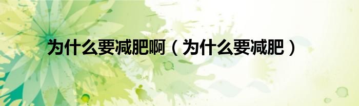 以上就是【为什么要减肥啊,为什么要减肥】相关内容。