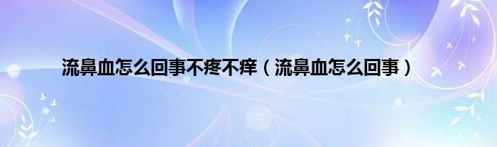 大家好,小问来为大家解答以上问题。流鼻血怎么回事不疼不痒,流鼻血怎么回事这个很多人还不知道,现在让我们一起来看看吧!