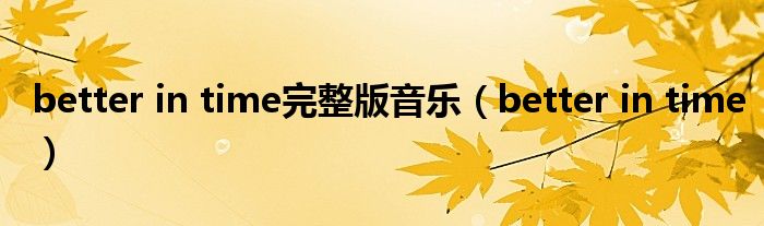 大家好,小问来为大家解答以上问题。better in time完整版音乐,better in time这个很多人还不知道,现在让我们一起来看看吧!