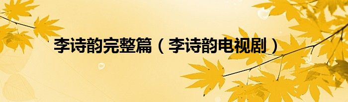 以上就是【李诗韵完整篇,李诗韵电视剧】相关内容。