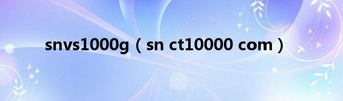 大家好,小问来为大家解答以上问题。snvs1000g,sn ct10000 com这个很多人还不知道,现在让我们一起来看看吧!