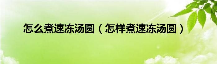 以上就是【怎么煮速冻汤圆,怎样煮速冻汤圆】相关内容。