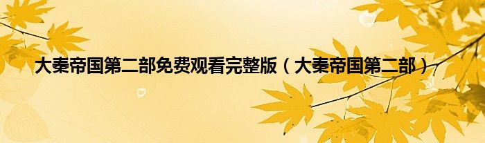 大家好,小问来为大家解答以上问题。大秦帝国第二部免费观看完整版,大秦帝国第二部这个很多人还不知道,现在让我们一起来看看吧!