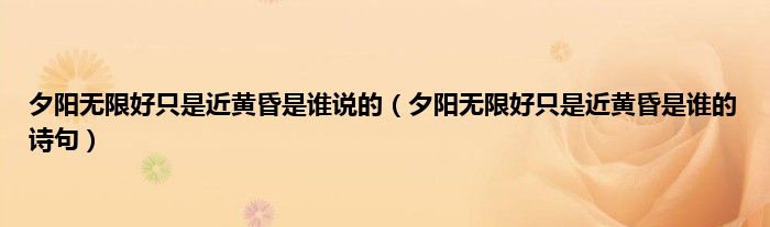 夕阳无限好只是近黄昏是谁说的(夕阳无限好只是近黄昏是谁的诗句)