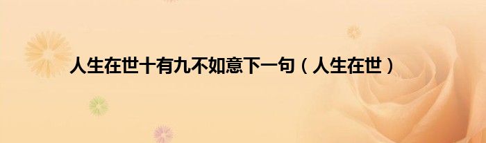 人生在世十有九不如意下一句(人生在世)