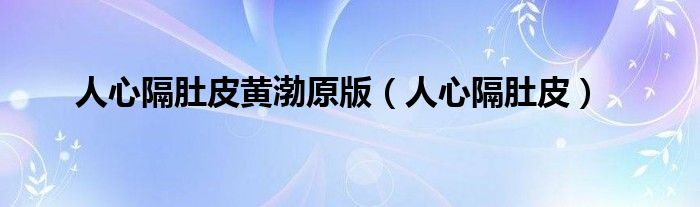 以上就是【人心隔肚皮黄渤原版,人心隔肚皮】相关内容。