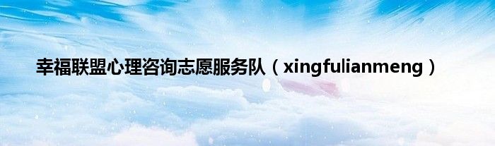 大家好,小问来为大家解答以上问题。幸福联盟心理咨询志愿服务队,xingfulianmeng这个很多人还不知道,现在让我们一起来看看吧!