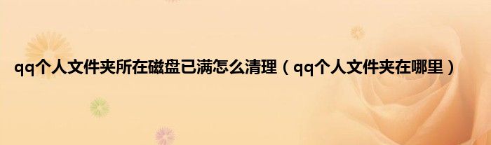 以上就是【qq个人文件夹所在磁盘已满怎么清理,qq个人文件夹在哪里】相关内容。