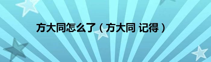 大家好,小问来为大家解答以上问题。方大同怎么了,方大同 记得这个很多人还不知道,现在让我们一起来看看吧!