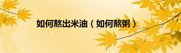 以上就是【如何熬出米油,如何熬粥】相关内容。