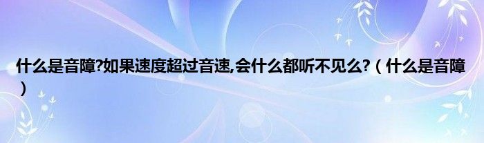 以上就是【什么是音障?如果速度超过音速,会什么都听不见么?,什么是音障】相关内容。