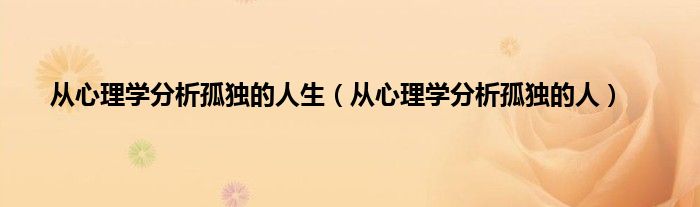 大家好,小问来为大家解答以上问题。从心理学分析孤独的人生,从心理学分析孤独的人这个很多人还不知道,现在让我们一起来看看吧!