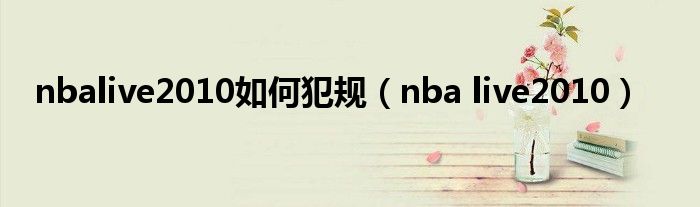 大家好,小问来为大家解答以上问题。nbalive2010如何犯规,nba live2010这个很多人还不知道,现在让我们一起来看看吧!