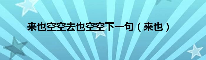 大家好,小问来为大家解答以上问题。来也空空去也空空下一句,来也这个很多人还不知道,现在让我们一起来看看吧!