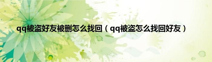 以上就是【qq被盗好友被删怎么找回,qq被盗怎么找回好友】相关内容。