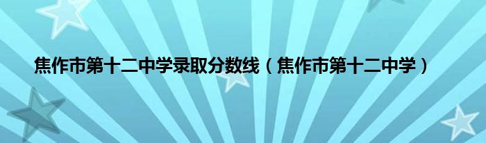 大家好,小问来为大家解答以上问题。焦作市第十二中学录取分数线,焦作市第十二中学这个很多人还不知道,现在让我们一起来看看吧!