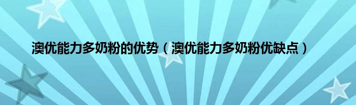 大家好,小问来为大家解答以上问题。澳优能力多奶粉的优势,澳优能力多奶粉优缺点这个很多人还不知道,现在让我们一起来看看吧!