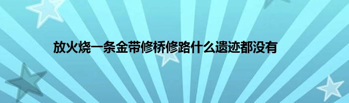 大家好,小问来为大家解答以上问题。放火烧一条金带修桥修路什么遗迹都没有这个很多人还不知道,现在让我们一起来看看吧!