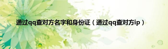 以上就是【通过qq查对方名字和身份证,通过qq查对方ip】相关内容。