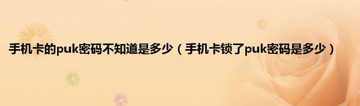 以上就是【手机卡的puk密码不知道是多少,手机卡锁了puk密码是多少】相关内容。