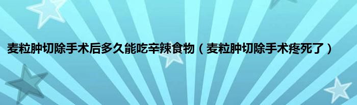 大家好,小问来为大家解答以上问题。麦粒肿切除手术后多久能吃辛辣食物,麦粒肿切除手术疼死了这个很多人还不知道,现在让我们一起来看看吧!