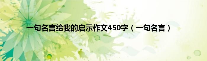 大家好,小问来为大家解答以上问题。一句名言给我的启示作文450字,一句名言这个很多人还不知道,现在让我们一起来看看吧!