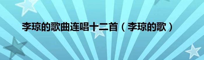 大家好,小问来为大家解答以上问题。李琼的歌曲连唱十二首,李琼的歌这个很多人还不知道,现在让我们一起来看看吧!