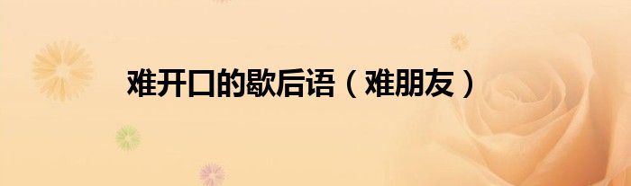 大家好,小问来为大家解答以上问题。难开口的歇后语,难朋友这个很多人还不知道,现在让我们一起来看看吧!