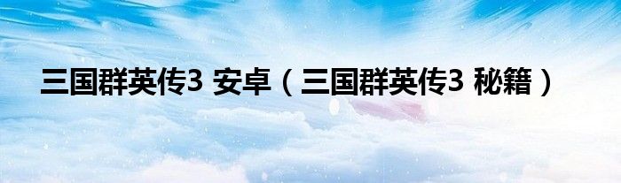 大家好,小问来为大家解答以上问题。三国群英传3 安卓,三国群英传3 秘籍这个很多人还不知道,现在让我们一起来看看吧!