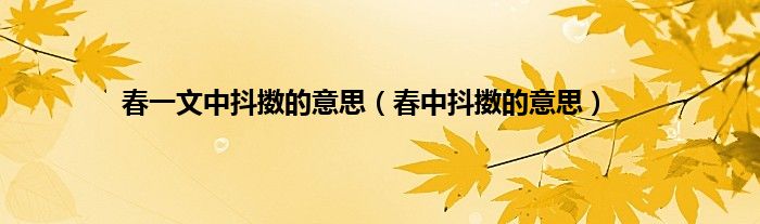 以上就是【春一文中抖擞的意思,春中抖擞的意思】相关内容。