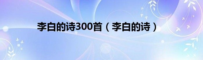 大家好,小问来为大家解答以上问题。李白的诗300首,李白的诗这个很多人还不知道,现在让我们一起来看看吧!