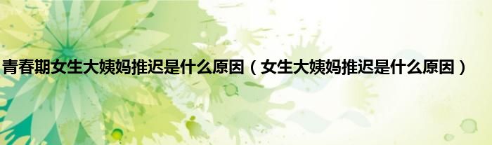 本文,青春期女生大姨妈推迟是什么原因,女生大姨妈推迟是什么原因到此就分享完毕,希望对大家有所帮助。