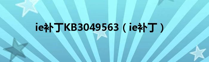 以上就是【ie补丁KB3049563,ie补丁】相关内容。